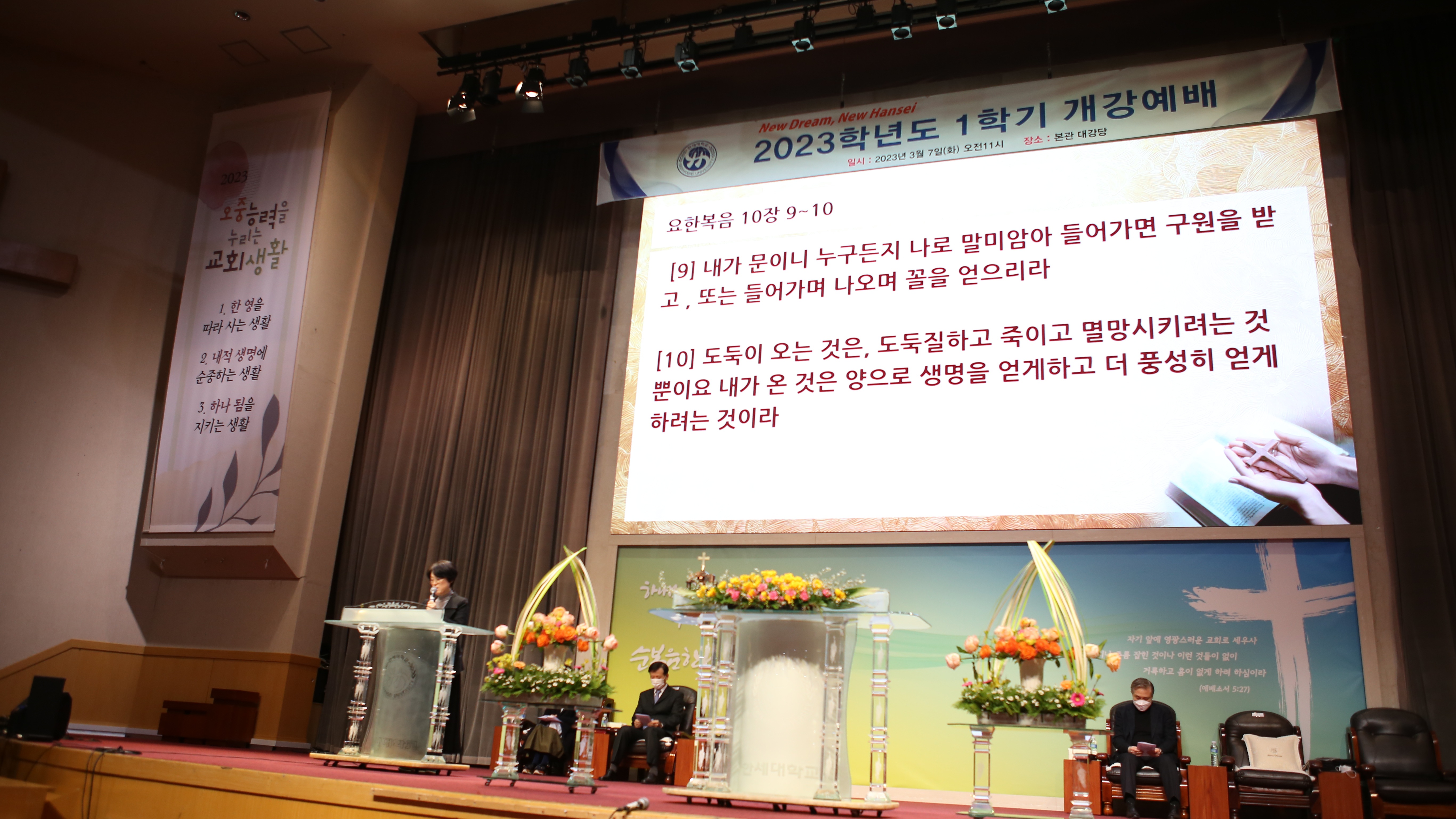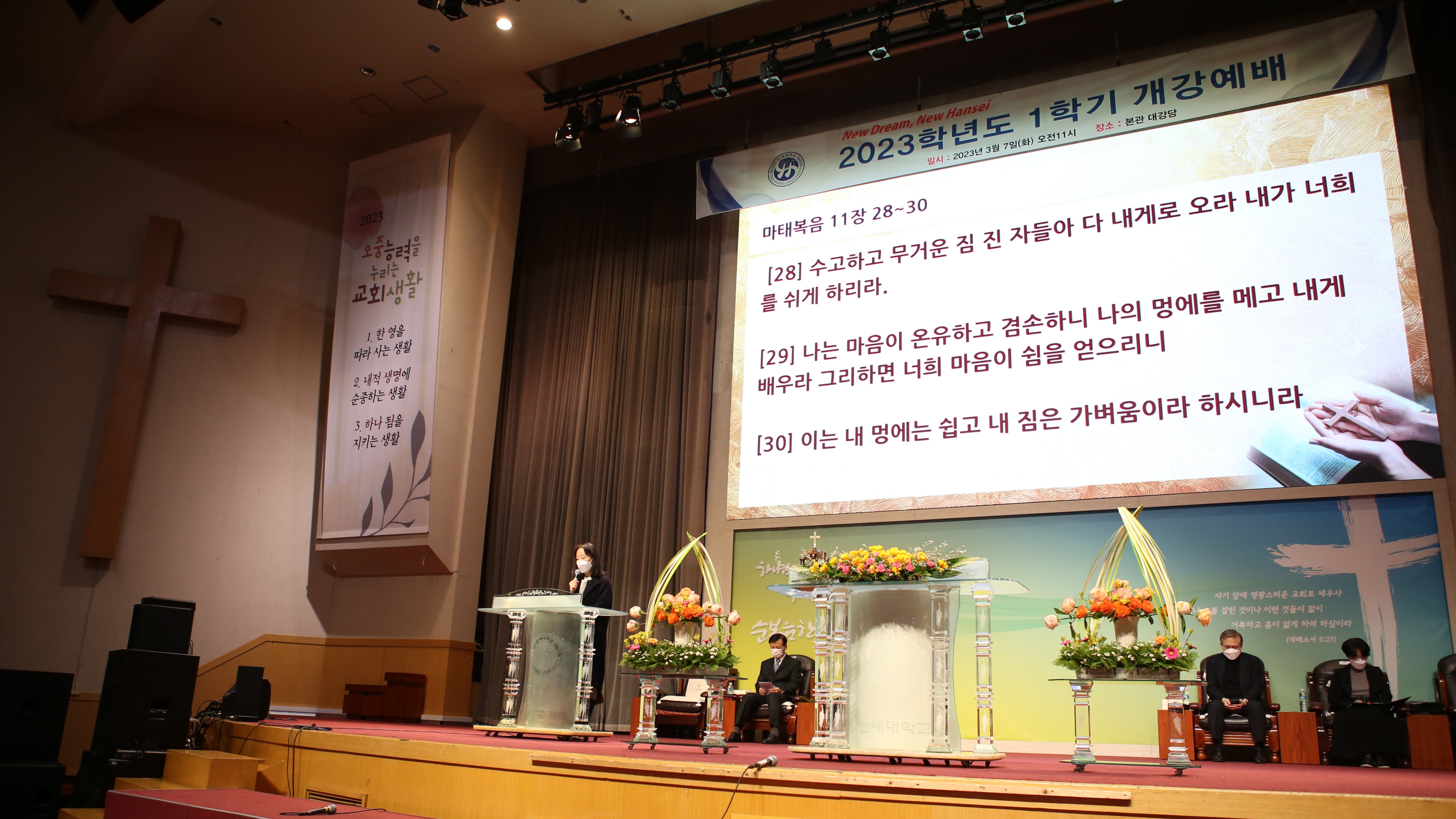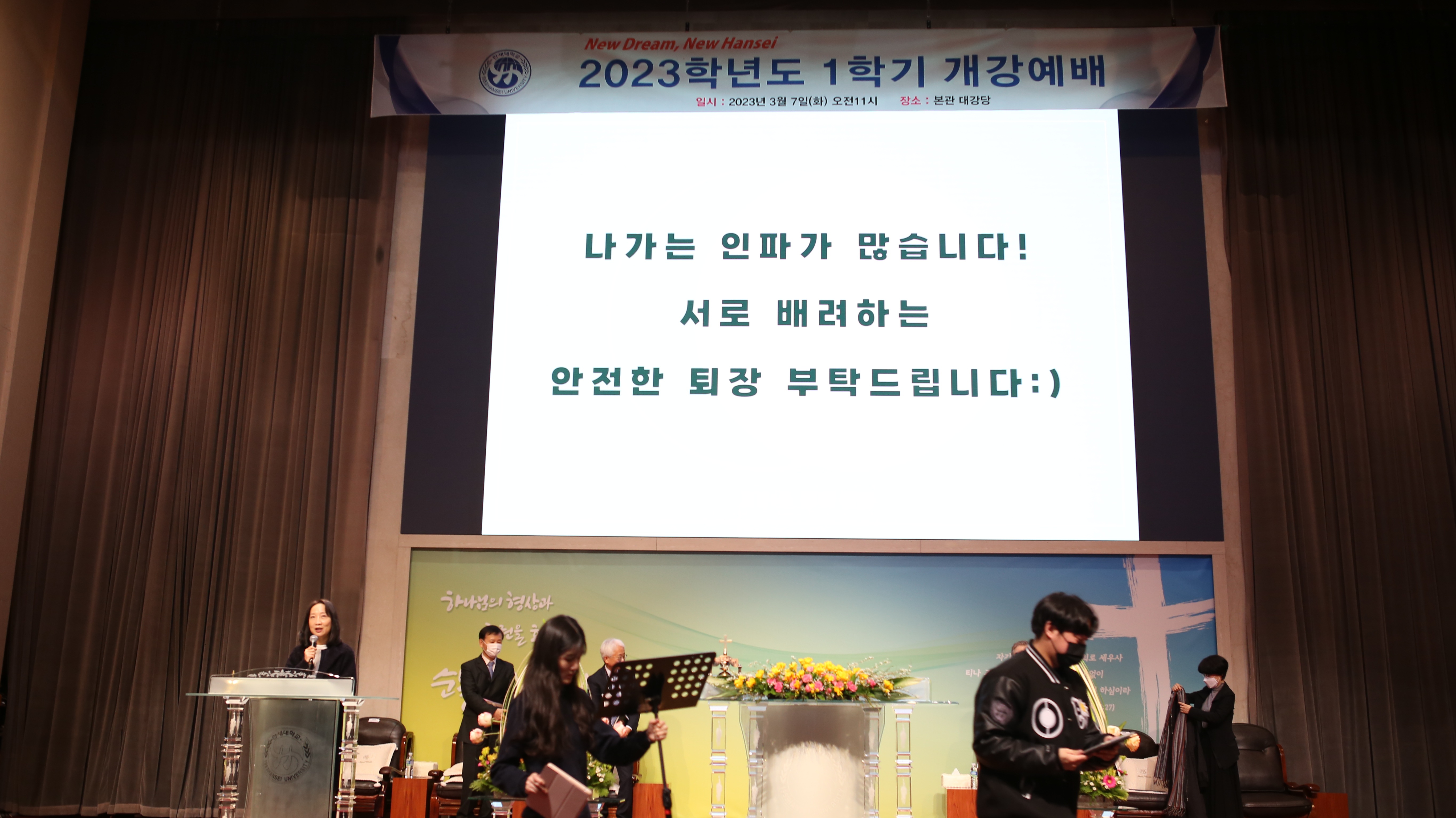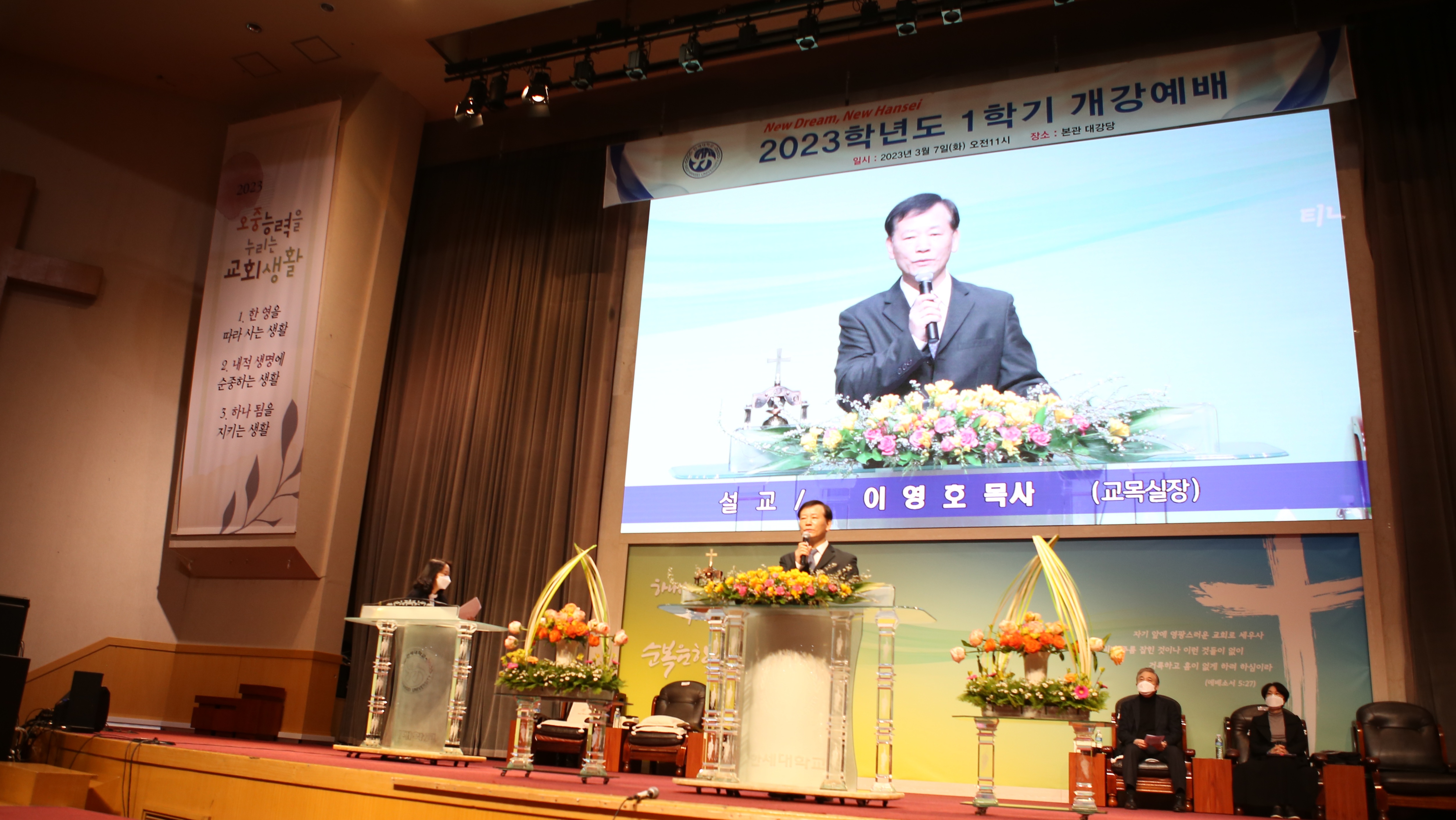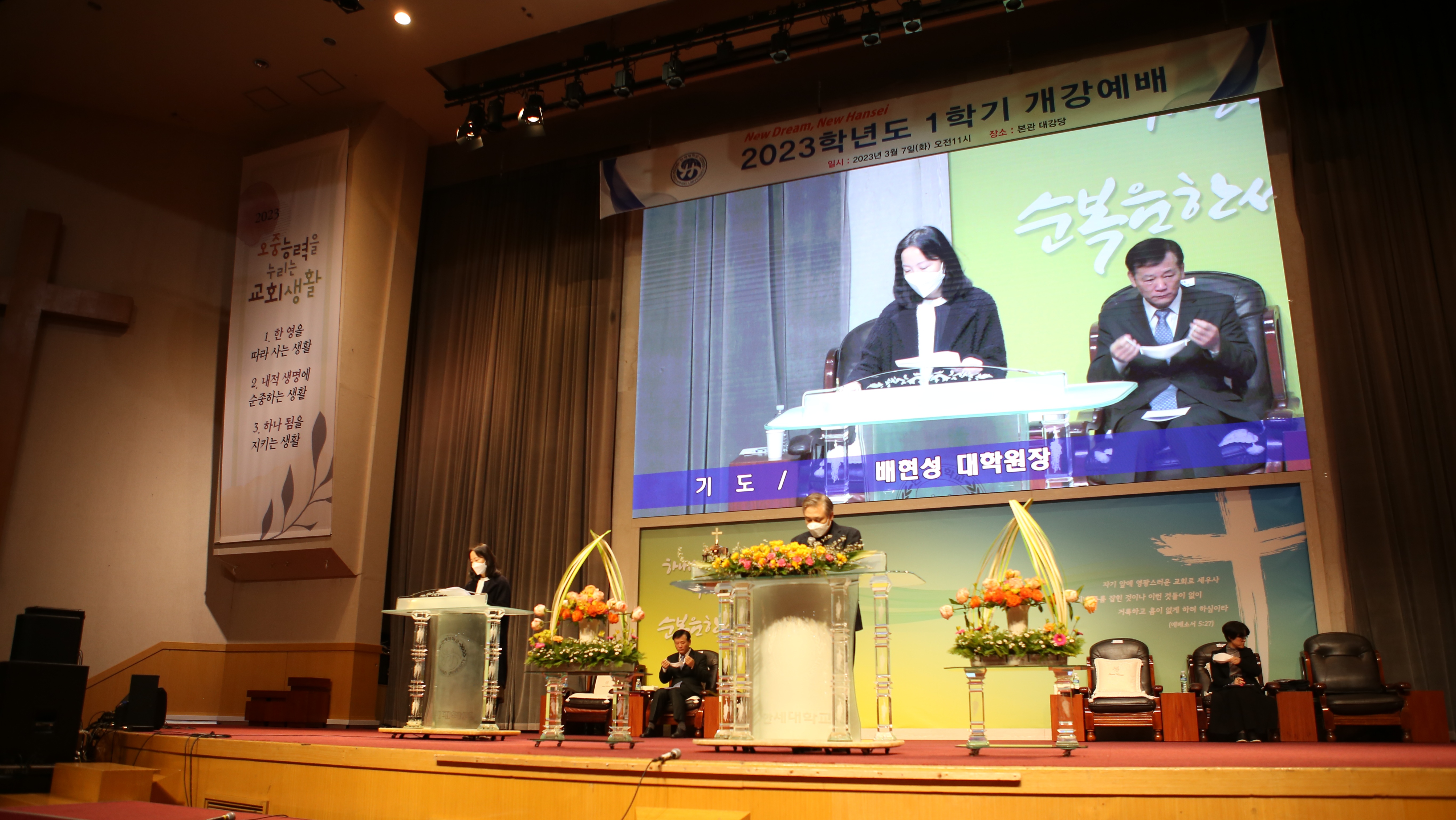 2023년 3월 7일(화) 11:00, 본교 본관 2층 대강당에서 2023학년도 1학기 개강예배(입학식)이 있었다.