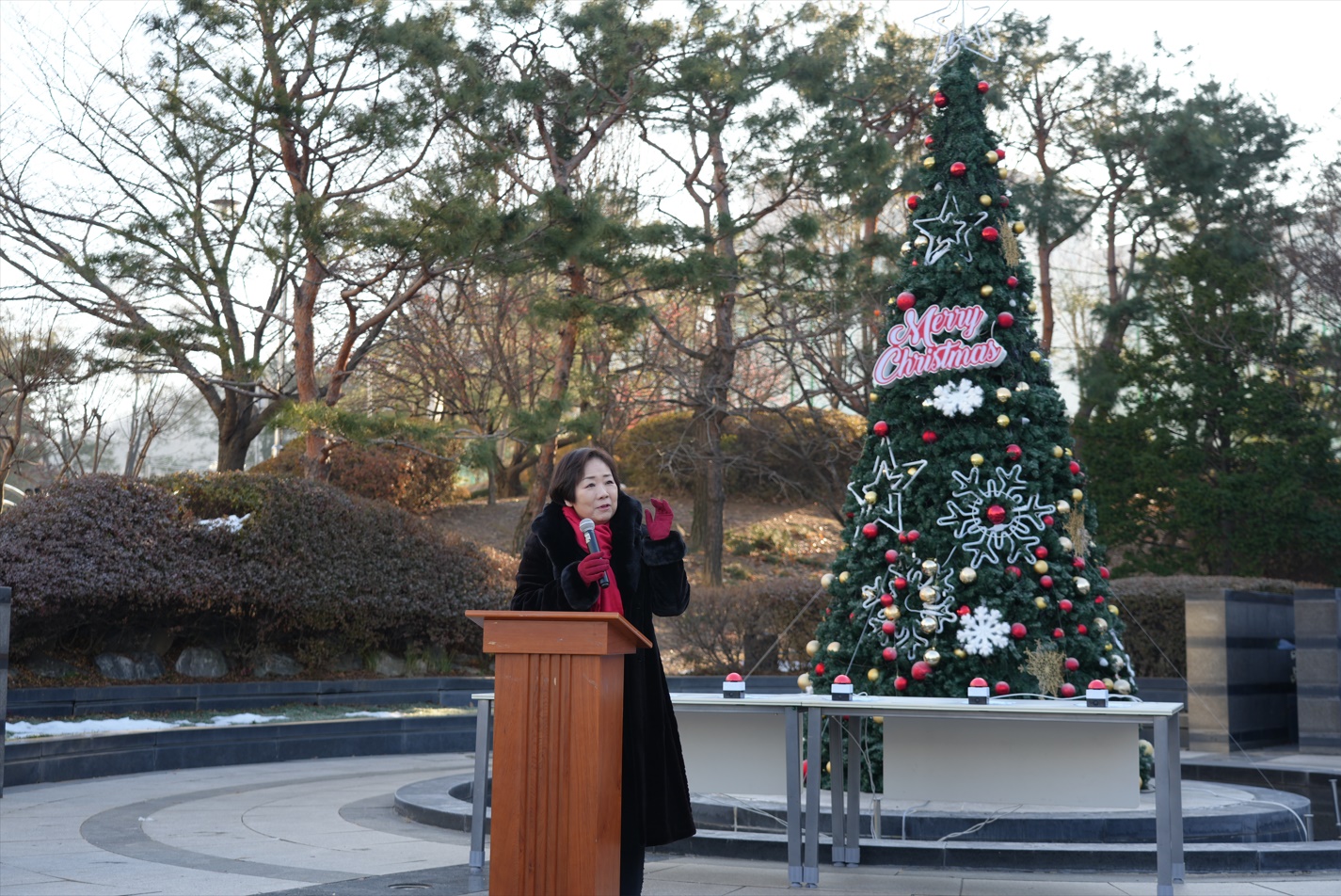 이날 백인자 총장은 “한세대학교에 세워진 성탄트리를 보는 지역사회 구성원들에게 성탄의 의미가 전달될 수 있기를 바란다. 특히 성탄트리 맨 위의 별은 신약성경에 동방박사가 아기 예수를 찾아가는 소중한 이정표로 소개된다. 성탄절의 영문 표기 크리스마스(Christmas)는 그리스도(Christ, 메시야)와 마스(mass, 예배)가 합쳐진 말로, 성탄절이면 곳곳에서 사용되는 ‘메리 크리스마스(Merry Christmas)’ 인사말은 예수의 탄생을 축하하고 예배하는 의미를 담고 있다”고 소개했다.