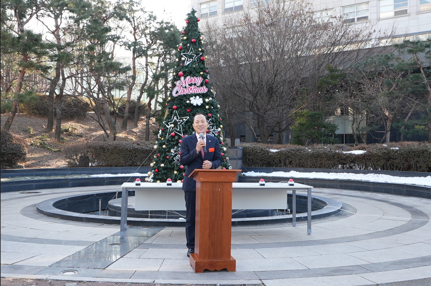 한세대학교에 성탄트리를 기증한 여의도순복음교회 안수집사회를 대표하여 허규홍 회장은 “영광의 100주년을 향해 도약하는 한세대학교가 더욱 발전할 수 있도록 물질과 기도로 지속적인 후원과 관심을 가지도록 노력하겠다”고 밝혔다.