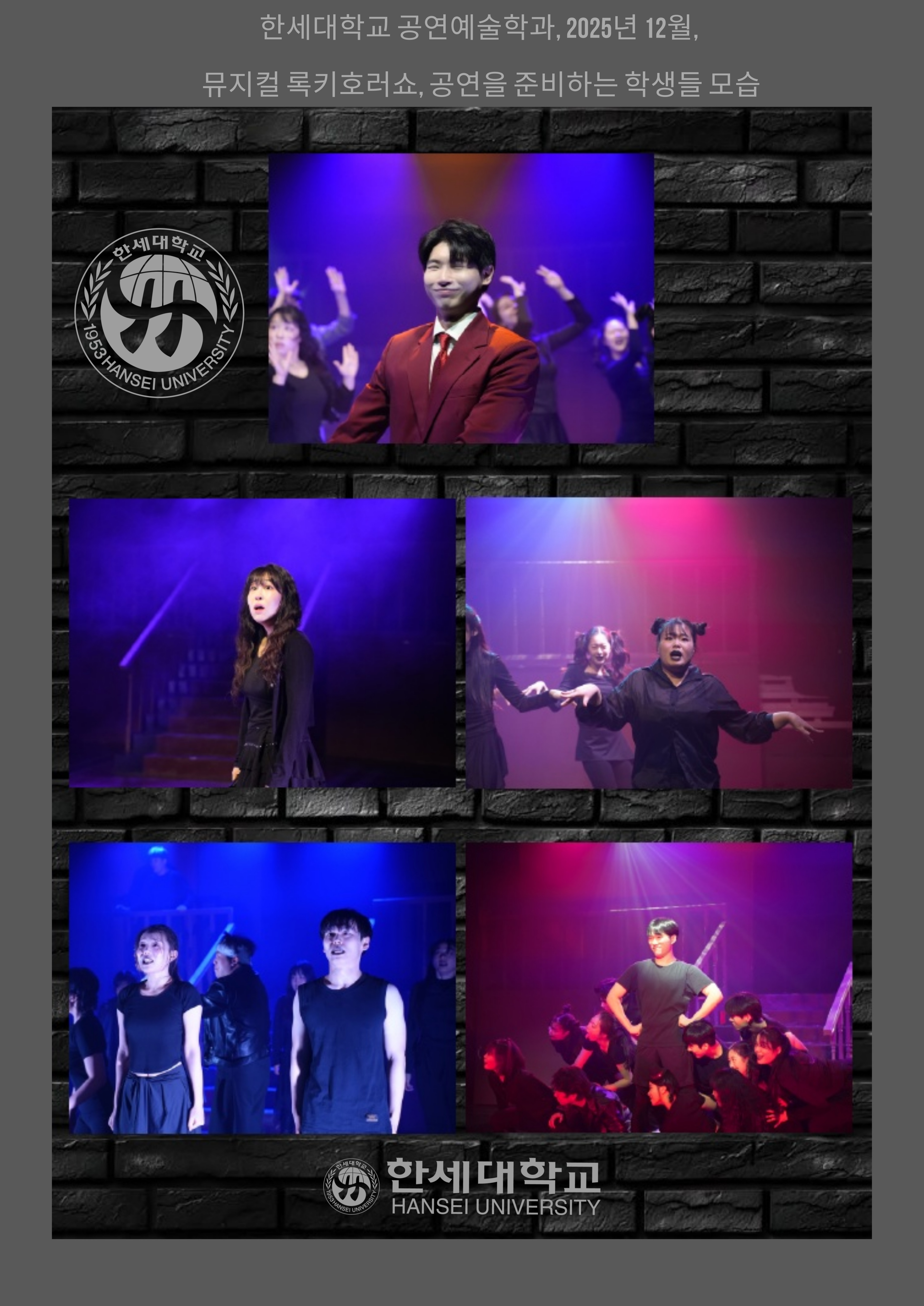한세대학교 공연예술학과(학과장 이희숙)는 2025학년도 2학기 정기공연으로 뮤지컬 ‘록키호러쇼(The Rocky Horror Show)’를 11일부터 14일까지 대학원관 1층 소극장 ‘희(希)’에서 무대에 올린다고 밝혔다.