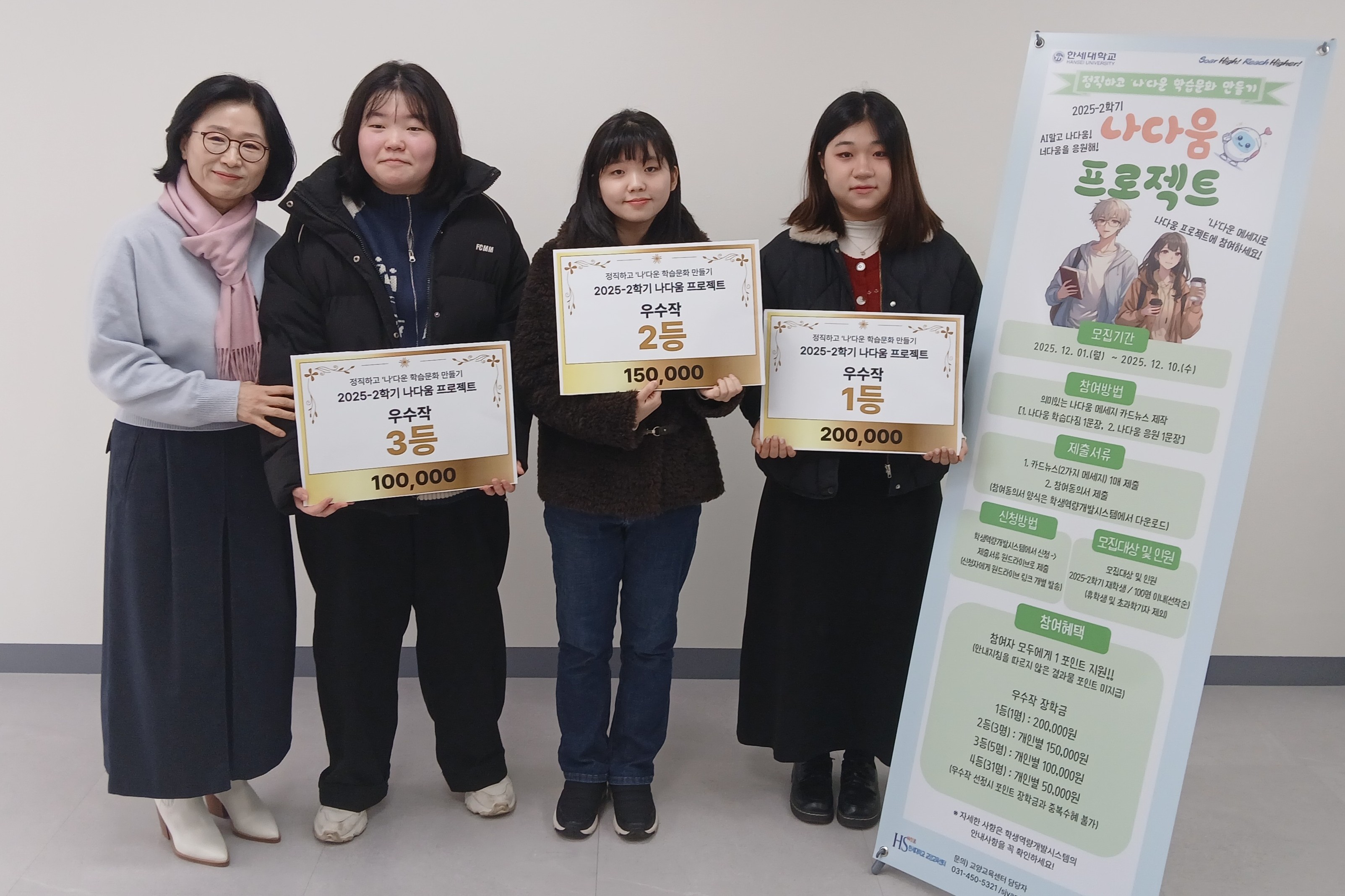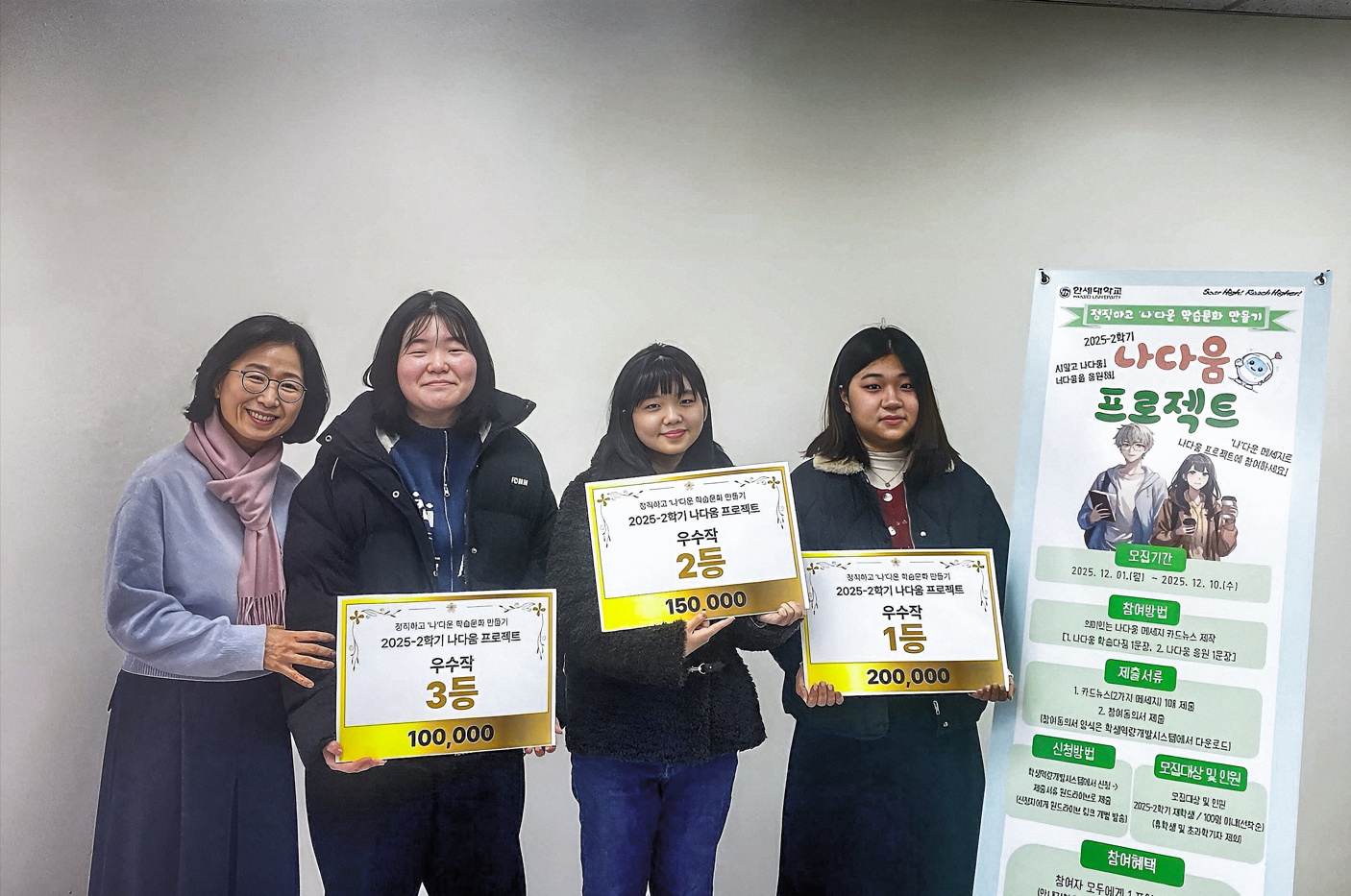 한세대학교(총장 백인자)는 미래창의교육원 교양교육센터를 중심으로 정직한 학습과 따뜻한 응원으로 당당한 ‘나’다운 학습 문화를 만드는 학생 참여형 캠페인 ‘2025 나다움 프로젝트’를 전개하고 우수 참여자를 선정하여 시상식을 진행하였다.