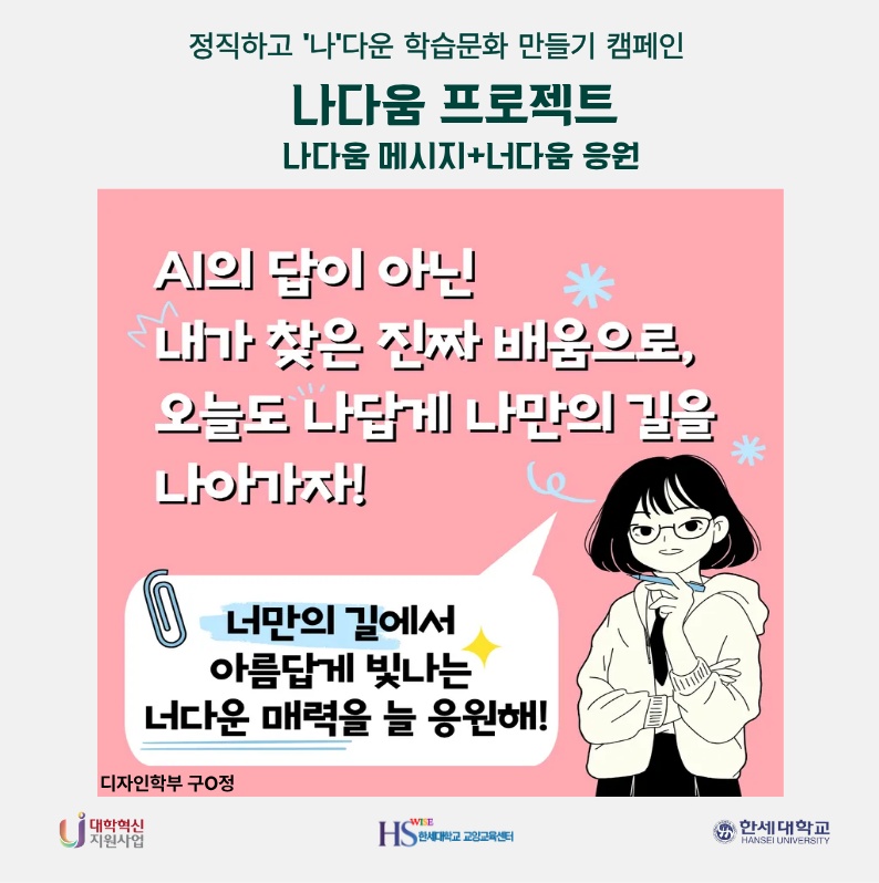 교양교육센터 주관, AI가 아닌 나만의 표현으로 정직한 학습을 지지하고 응원하는 캠페인